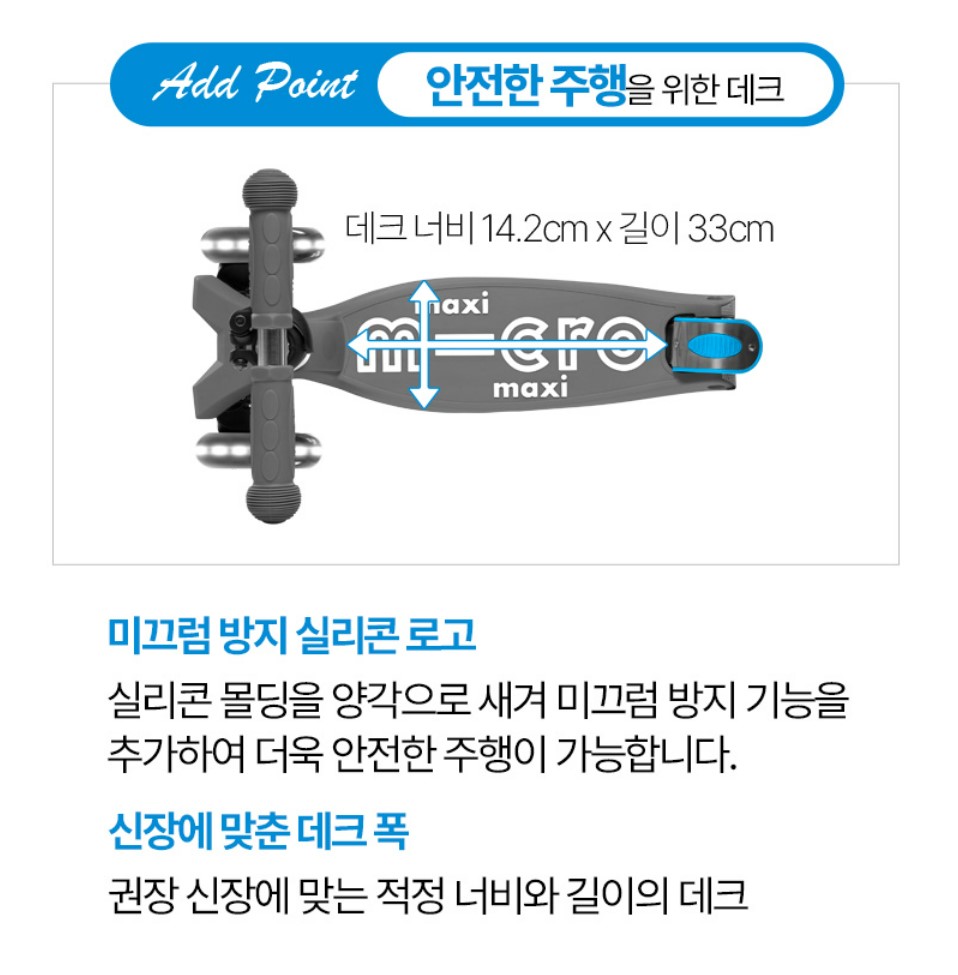 보토의 킥보드는 바퀴가 한 개 경우가 많은데 마이크로킥보드 맥시T 폴더블 디럭스 LED는 두 개의 밀착된 뒷 바퀴로 부드러운 제동과 안정성이 높았어요.