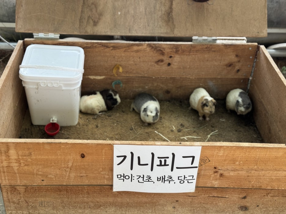 동물은 말, 양, 기니피그, 토끼, 닭 등 이 있었어요. 각각 먹이가 달라서 꼭 자세히 보고 주어야 해요.