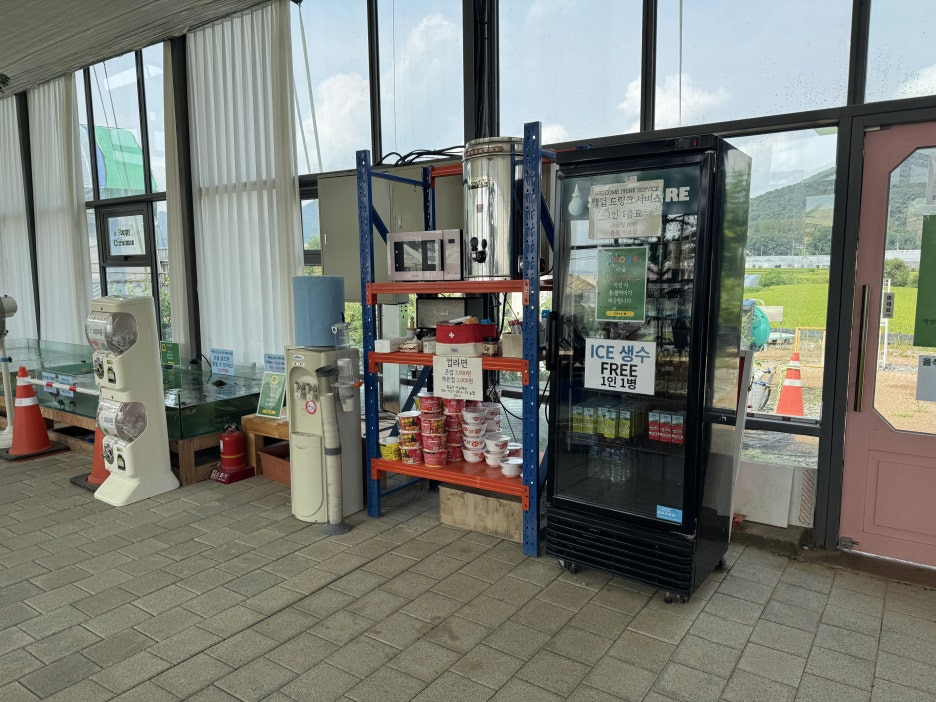 내부의 공간은 결제를 할 수 있는 공간, 먹이 준비 공간, 음료 공간, 쉴 수 있는 공간 으로 구성되어 있어요.