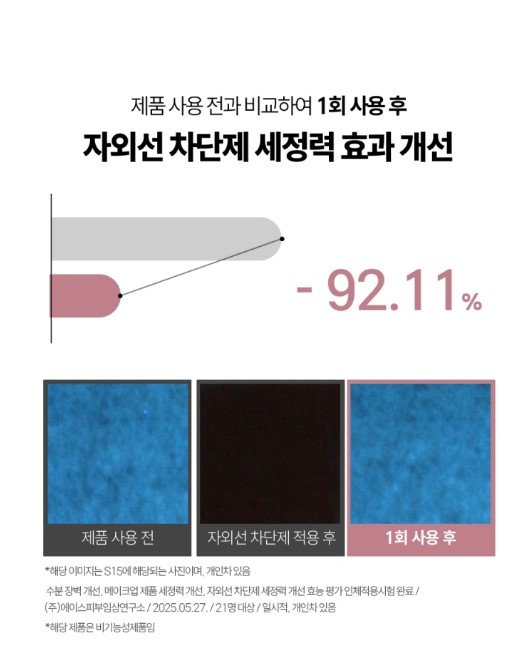 🤟🏻 자외선 차단제 세정력 효과 개선 - 92.11%